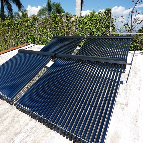 Los generadores termo-solares se construyeron con colectores solares de muy alta eficiencia, basados en la tecnología de tubos evacuados con conductor térmico (heat pipe). Esta tecnología permitió cumplir con los requerimientos del cliente de calentar volúmenes de agua desde 1200 lt hasta 2000 lt a 65°C, utilizando desde 5 hasta 9 colectores solares y apegándose a las restricciones del espacio disponible en los techos de los negocios.
