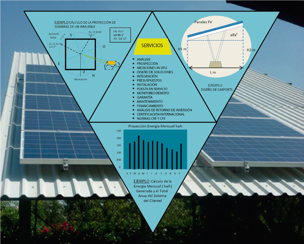 Nos especializamos en realizar proyectos Llave en Mano con soluciones profesionales para la generación de electricidad o calentamiento de agua utilizando la energía solar, así como en soluciones de mejoramiento de la eficiencia energética de tus instalaciones.